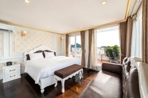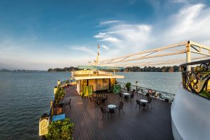 12.00: Arrive Ha Long bay, transfer by tender to the boat, and enjoy welcome drinks. Check in your cabin and enjoy a real Vietnamese lunch while beginning your sail through the fairy land of Ha Long bay, passing by Stone Dog islet, Incense Burner islet, Fighting Cocks, Swan islet, and Duck islet…